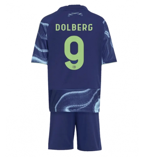 Fotbollsset Barn Ajax Kasper Dolberg #9 Bortatröja 2025-26 Mini-Kit Kortärmad (+ korta byxor)