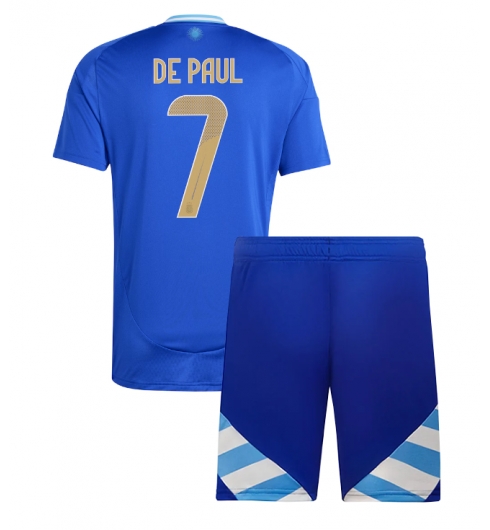 Fotbollsset Barn Argentina Rodrigo De Paul #7 Bortatröja Copa America 2024 Mini-Kit Kortärmad (+ korta byxor)