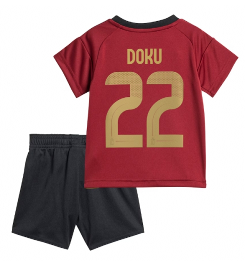 Fotbollsset Barn Belgien Jeremy Doku #22 Hemmatröja EM 2024 Mini-Kit Kortärmad (+ korta byxor)
