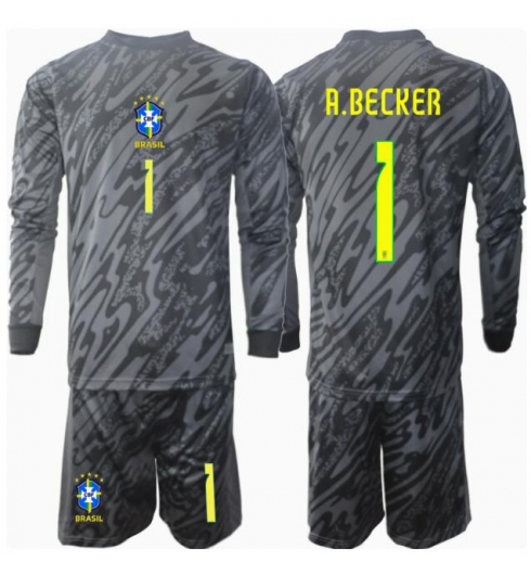 Fotbollsset Barn Brasilien Alisson Becker #1 Målvakt Bortatröja Copa America 2024 Mini-Kit Långärmad (+ korta byxor)