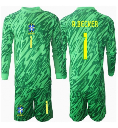 Fotbollsset Barn Brasilien Alisson Becker #1 Målvakt Hemmatröja Copa America 2024 Mini-Kit Långärmad (+ korta byxor)