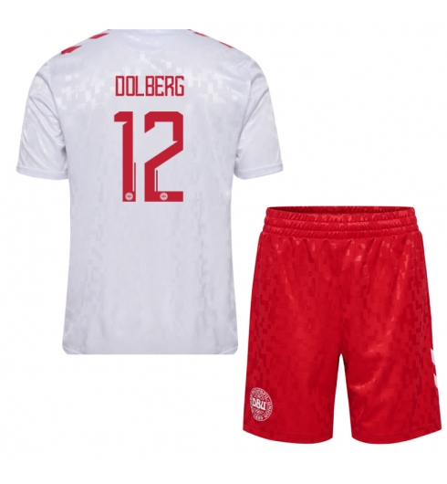 Fotbollsset Barn Danmark Kasper Dolberg #12 Bortatröja EM 2024 Mini-Kit Kortärmad (+ korta byxor)