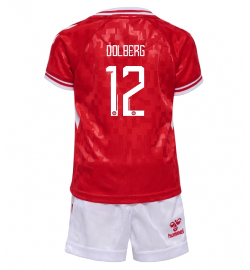 Fotbollsset Barn Danmark Kasper Dolberg #12 Hemmatröja EM 2024 Mini-Kit Kortärmad (+ korta byxor)
