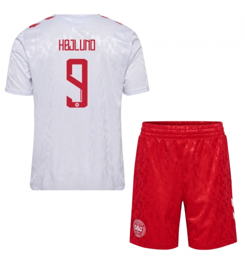 Fotbollsset Barn Danmark Rasmus Hojlund #9 Bortatröja EM 2024 Mini-Kit Kortärmad (+ korta byxor)