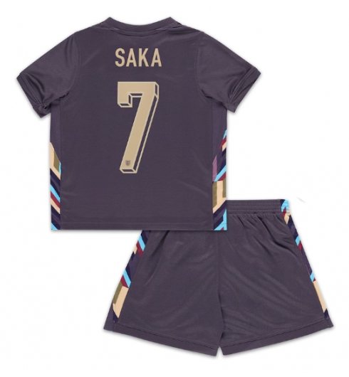 Fotbollsset Barn England Bukayo Saka #7 Bortatröja EM 2024 Mini-Kit Kortärmad (+ korta byxor)