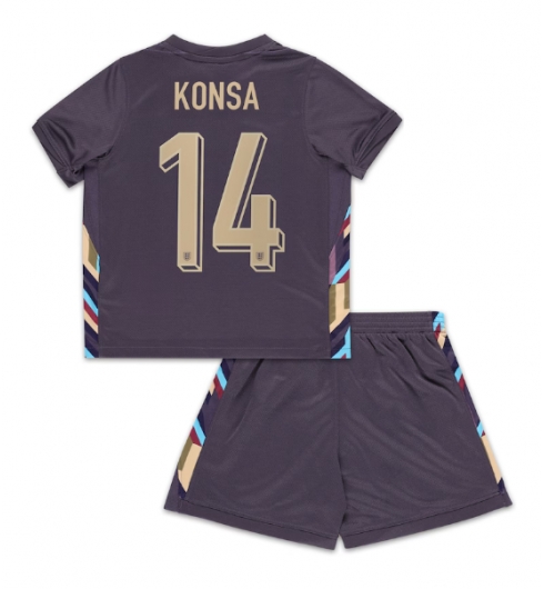 Fotbollsset Barn England Ezri Konsa #14 Bortatröja EM 2024 Mini-Kit Kortärmad (+ korta byxor)