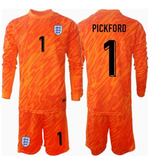 Fotbollsset Barn England Jordan Pickford #1 Målvakt Hemmatröja EM 2024 Mini-Kit Långärmad (+ korta byxor)