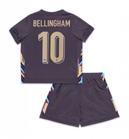 Fotbollsset Barn England Jude Bellingham #10 Bortatröja EM 2024 Mini-Kit Kortärmad (+ korta byxor)