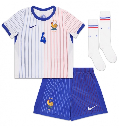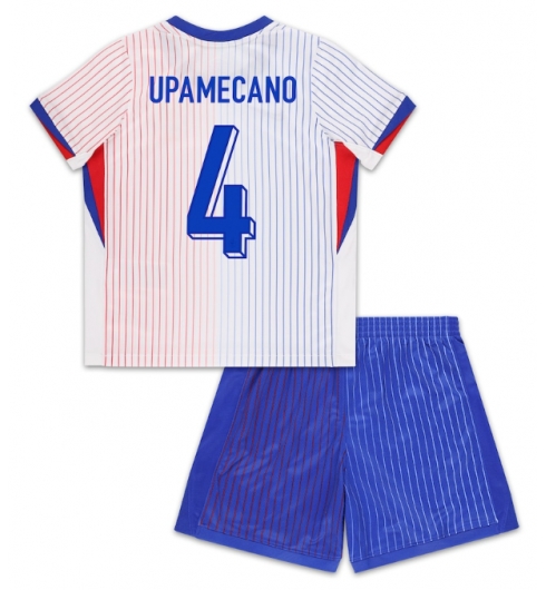 Fotbollsset Barn Frankrike Dayot Upamecano #4 Bortatröja EM 2024 Mini-Kit Kortärmad (+ korta byxor)