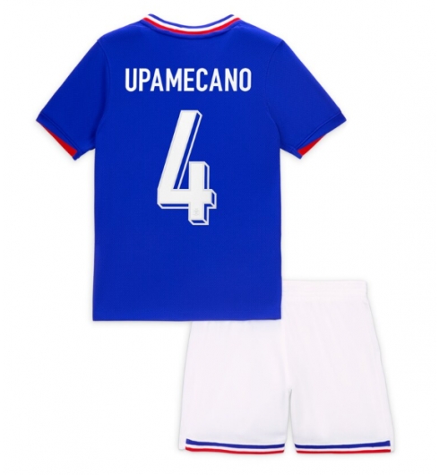 Fotbollsset Barn Frankrike Dayot Upamecano #4 Hemmatröja EM 2024 Mini-Kit Kortärmad (+ korta byxor)