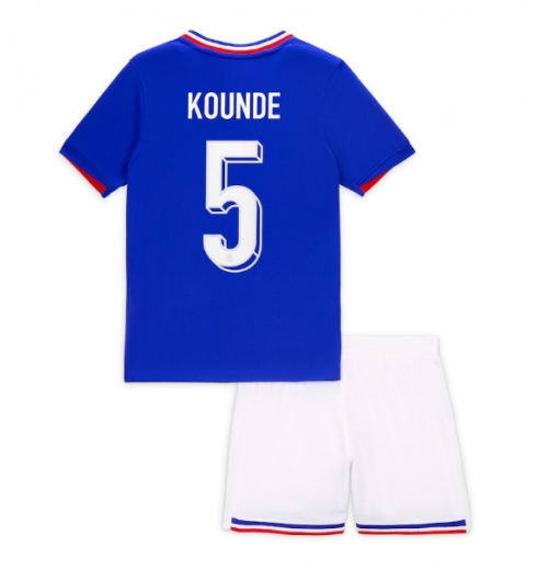 Fotbollsset Barn Frankrike Jules Kounde #5 Hemmatröja EM 2024 Mini-Kit Kortärmad (+ korta byxor)