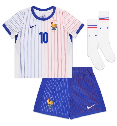Fotbollsset Barn Frankrike Kylian Mbappe #10 Bortatröja EM 2024 Mini-Kit Kortärmad (+ korta byxor)