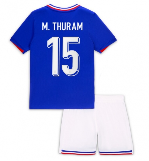Fotbollsset Barn Frankrike Marcus Thuram #15 Hemmatröja EM 2024 Mini-Kit Kortärmad (+ korta byxor)