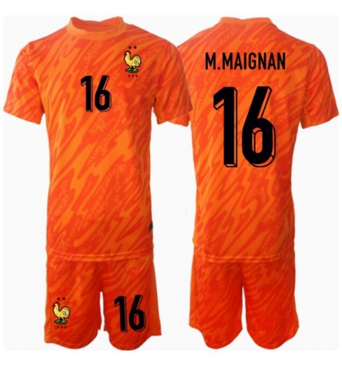 Fotbollsset Barn Frankrike Mike Maignan #16 Målvakt Bortatröja EM 2024 Mini-Kit Kortärmad (+ korta byxor)