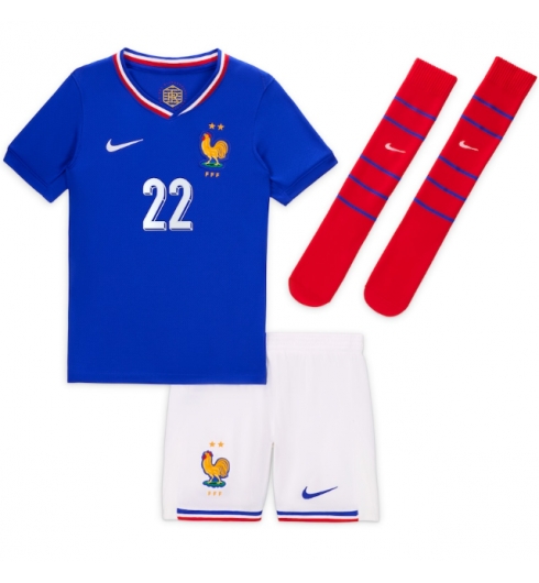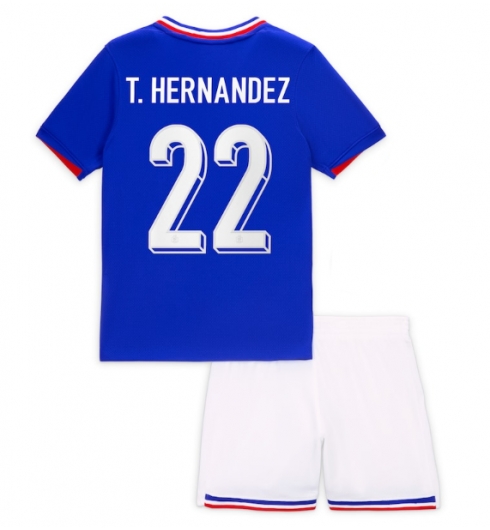 Fotbollsset Barn Frankrike Theo Hernandez #22 Hemmatröja EM 2024 Mini-Kit Kortärmad (+ korta byxor)