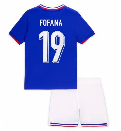 Fotbollsset Barn Frankrike Youssouf Fofana #19 Hemmatröja EM 2024 Mini-Kit Kortärmad (+ korta byxor)