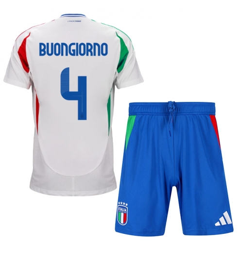 Fotbollsset Barn Italien Alessandro Buongiorno #4 Bortatröja EM 2024 Mini-Kit Kortärmad (+ korta byxor)