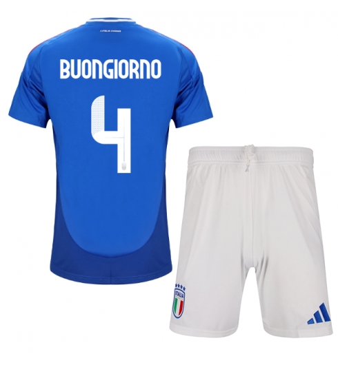 Fotbollsset Barn Italien Alessandro Buongiorno #4 Hemmatröja EM 2024 Mini-Kit Kortärmad (+ korta byxor)