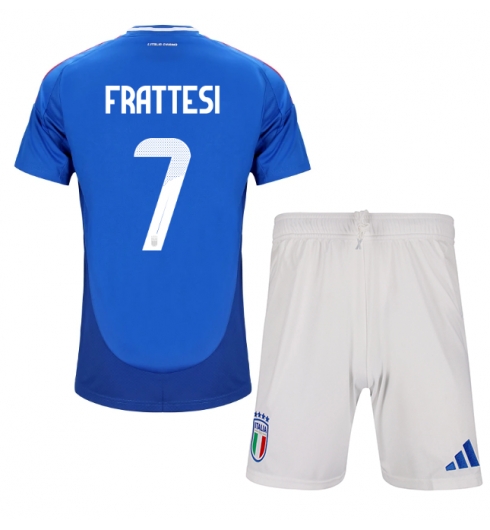 Fotbollsset Barn Italien Davide Frattesi #7 Hemmatröja EM 2024 Mini-Kit Kortärmad (+ korta byxor)