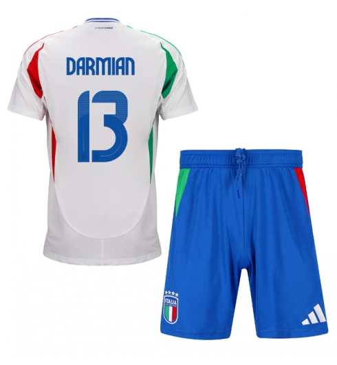 Fotbollsset Barn Italien Matteo Darmian #13 Bortatröja EM 2024 Mini-Kit Kortärmad (+ korta byxor)