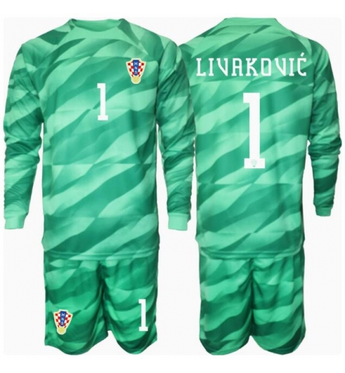 Fotbollsset Barn Kroatien Dominik Livakovic #1 Målvakt Bortatröja EM 2024 Mini-Kit Långärmad (+ korta byxor)