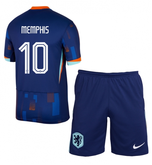 Fotbollsset Barn Nederländerna Memphis Depay #10 Bortatröja EM 2024 Mini-Kit Kortärmad (+ korta byxor)