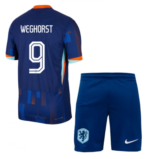Fotbollsset Barn Nederländerna Wout Weghorst #9 Bortatröja EM 2024 Mini-Kit Kortärmad (+ korta byxor)