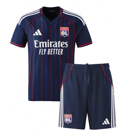 Fotbollsset Barn Olympique Lyonnais Bortatröja 2025-26 Mini-Kit Kortärmad (+ korta byxor)