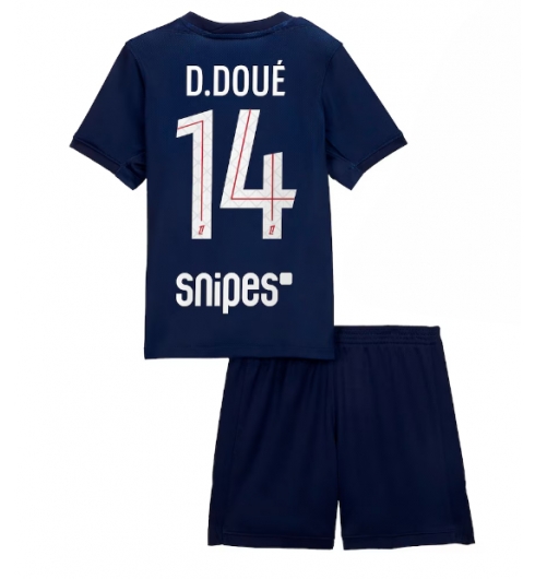 Fotbollsset Barn Paris Saint-Germain Desire Doue #14 Hemmatröja 2025-26 Mini-Kit Kortärmad (+ korta byxor)