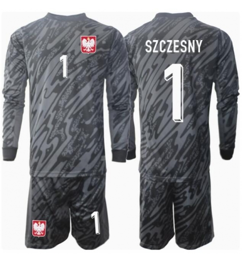 Fotbollsset Barn Polen Wojciech Szczesny #1 Målvakt Bortatröja EM 2024 Mini-Kit Långärmad (+ korta byxor)