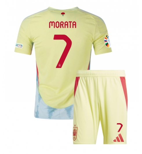 Fotbollsset Barn Spanien Alvaro Morata #7 Bortatröja EM 2024 Mini-Kit Kortärmad (+ korta byxor)