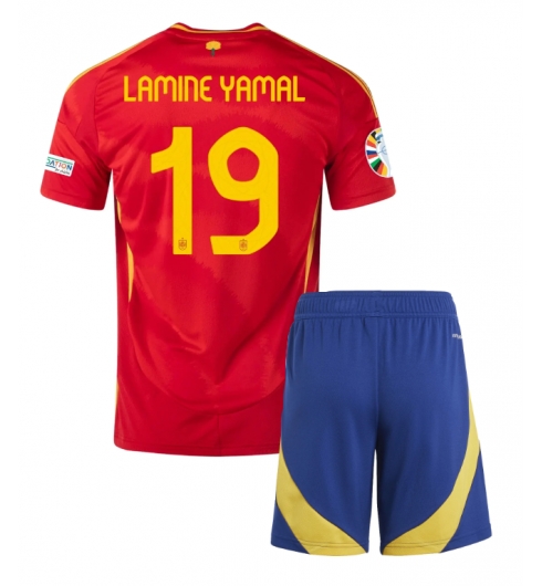 Fotbollsset Barn Spanien Lamine Yamal #19 Hemmatröja EM 2024 Mini-Kit Kortärmad (+ korta byxor)
