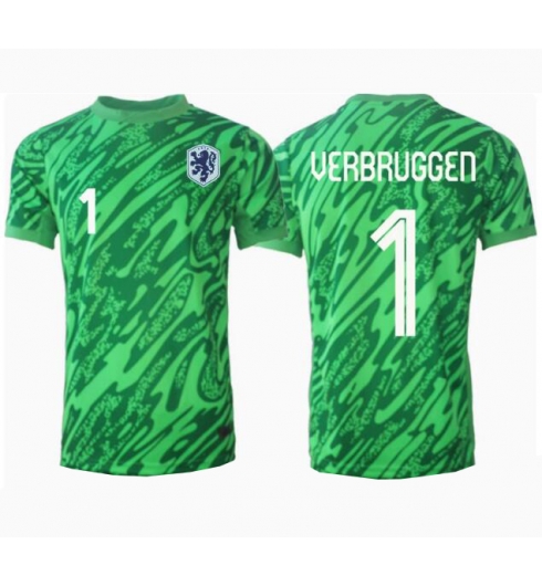Nederländerna Bart Verbruggen #1 Målvakt Hemmatröja EM 2024 Kortärmad