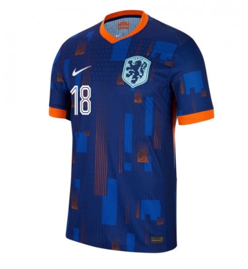 Nederländerna Donyell Malen #18 Bortatröja EM 2024 Kortärmad